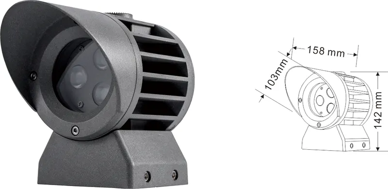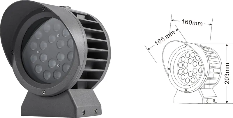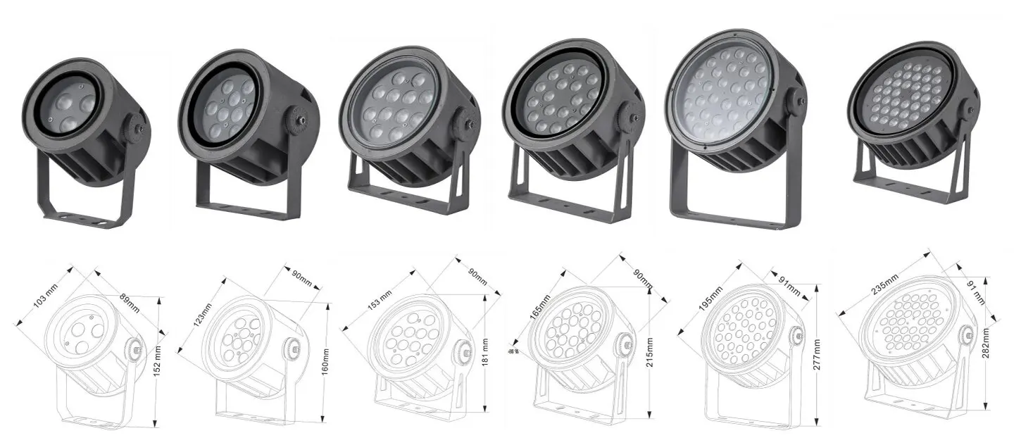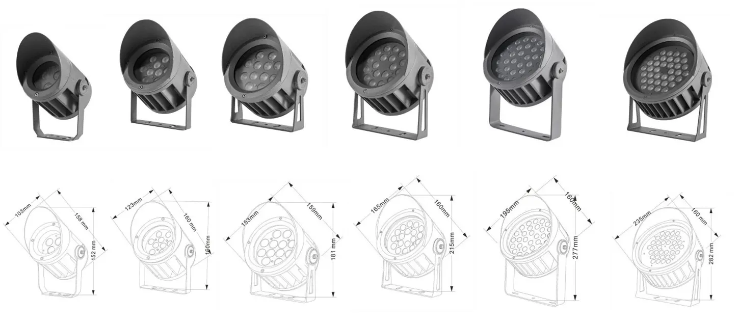 | LED -fasadprojektionsljus | Con-tgd02-1 | Φ103*89*H152mm | 3-10W | Material: Aluminium+härdat glas Konsoltyp: justerbar IP: IP67 Valfritt färgtemperatur: 3000K/4000K/6500K RGB / DMX512 RGBW / DMX512 Konventionell grå, anpassningsbar för att matcha byggnadsfasadfärg |