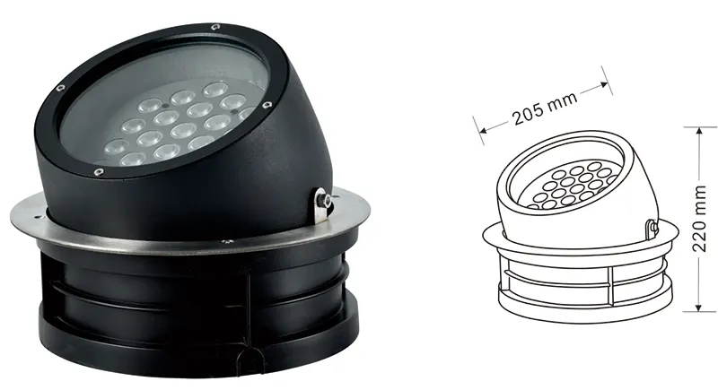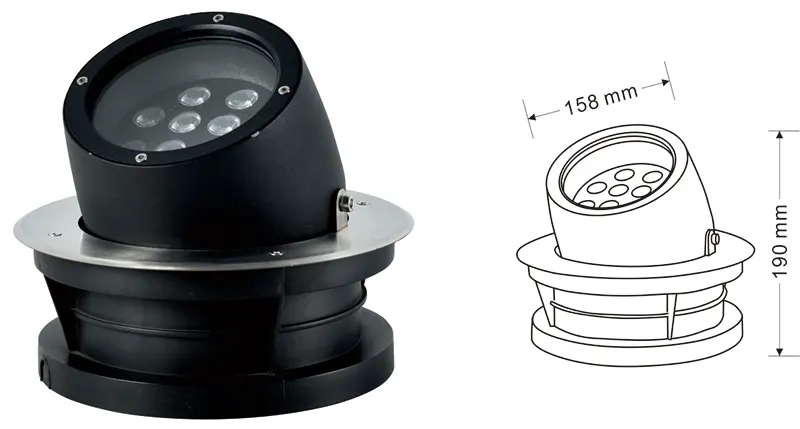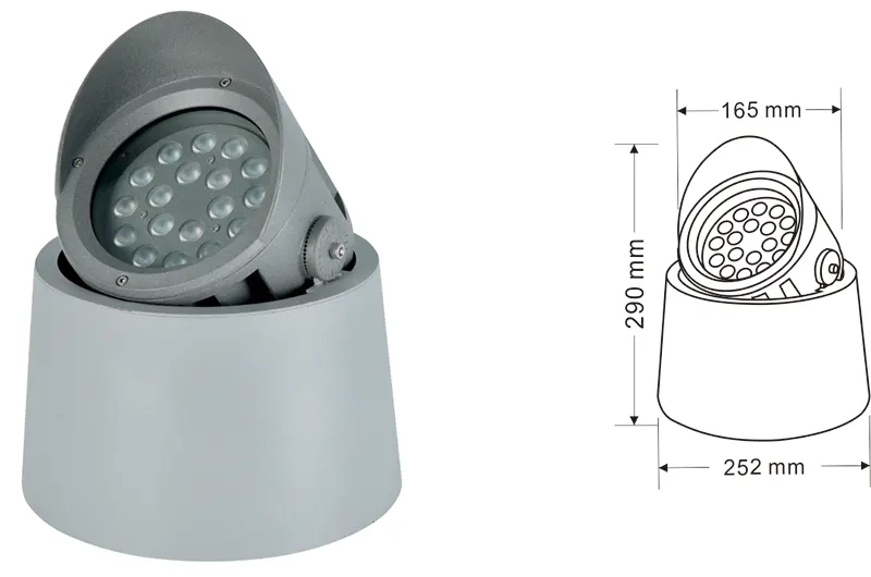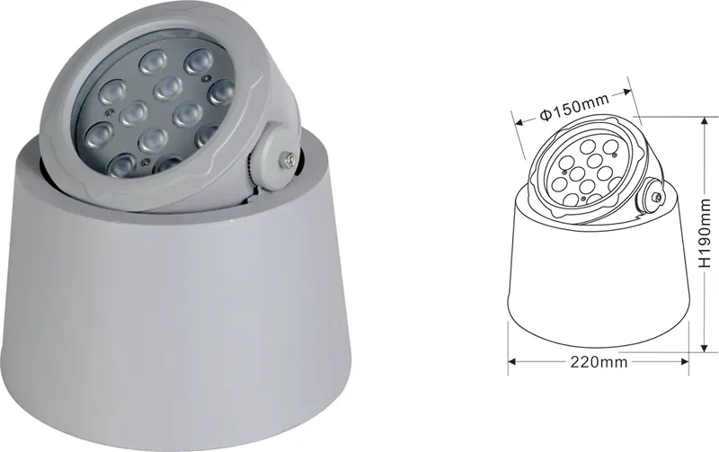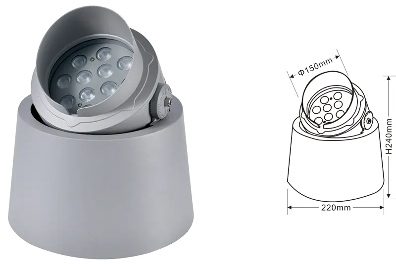 | LED Tree Uplight | KONS-TGD10-1 | Φ150*φ220*H190mm | 12W | Material: Aluminium+härdat glas Konsoltyp: justerbar IP: IP67 Valfritt färgtemperatur: 3000K/4000K/6500K RGB / DMX512 RGBW / DMX512 Konventionell grå, anpassningsbar för att matcha byggnadsfasadfärg |